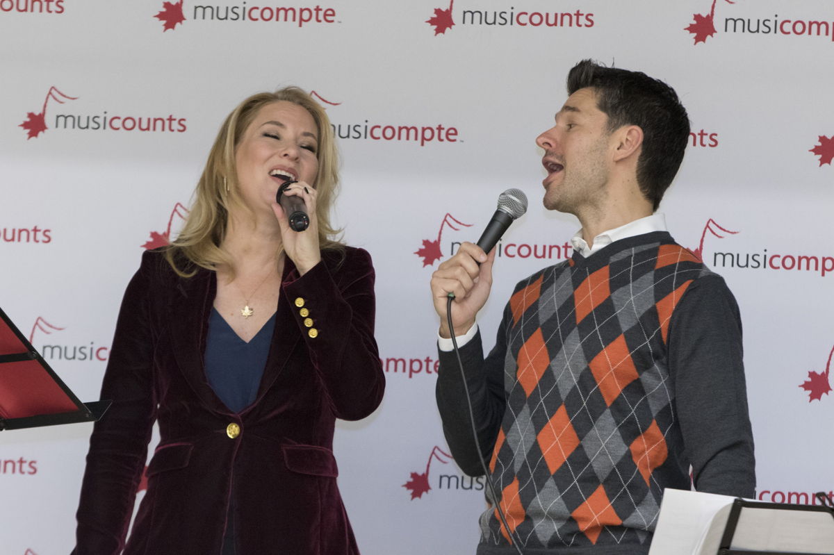 Eleanor McCain and Matt Dusk joined MusiCounts for a special holiday celebration at St. Aidan Catholic School in Scarborough. Through Eleanor McCain’s generous contribution of her True North: The Canadian Songbook Commemorative Band Aid Grants, St. Aidan Catholic School and four additional schools across the country were awarded $20,000 in new instruments via the MusiCounts Band Aid Program. As part of the festivities Eleanor McCain and Matt Dusk took to the stage to perform a special holiday medley of songs for students. Watch the celebration by clicking play below.