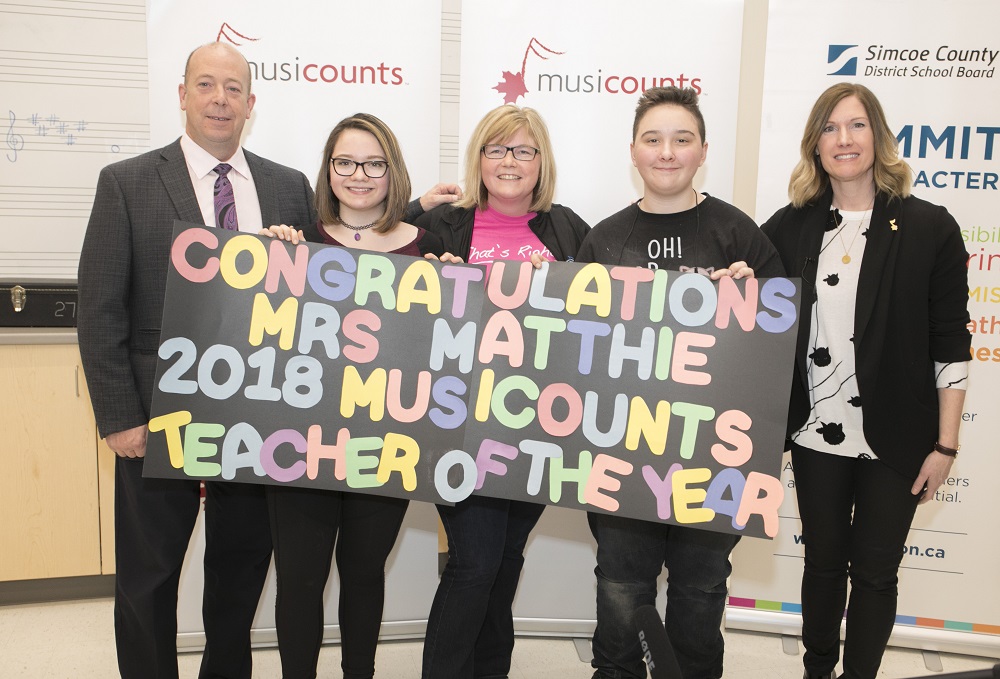 On February 28, MusiCounts, Canada’s leading music education charity, announced that Laura Lee Matthie of Orillia Secondary School in Orillia, ON is the 2018 recipient of the MusiCounts Teacher of the Year Award. The surprise announcement took place in Matthie’s classroom with her excited students and colleagues. Matthie was honoured for her outstanding dedication to inspiring the musical growth of her students, with some going on to become music teachers themselves.