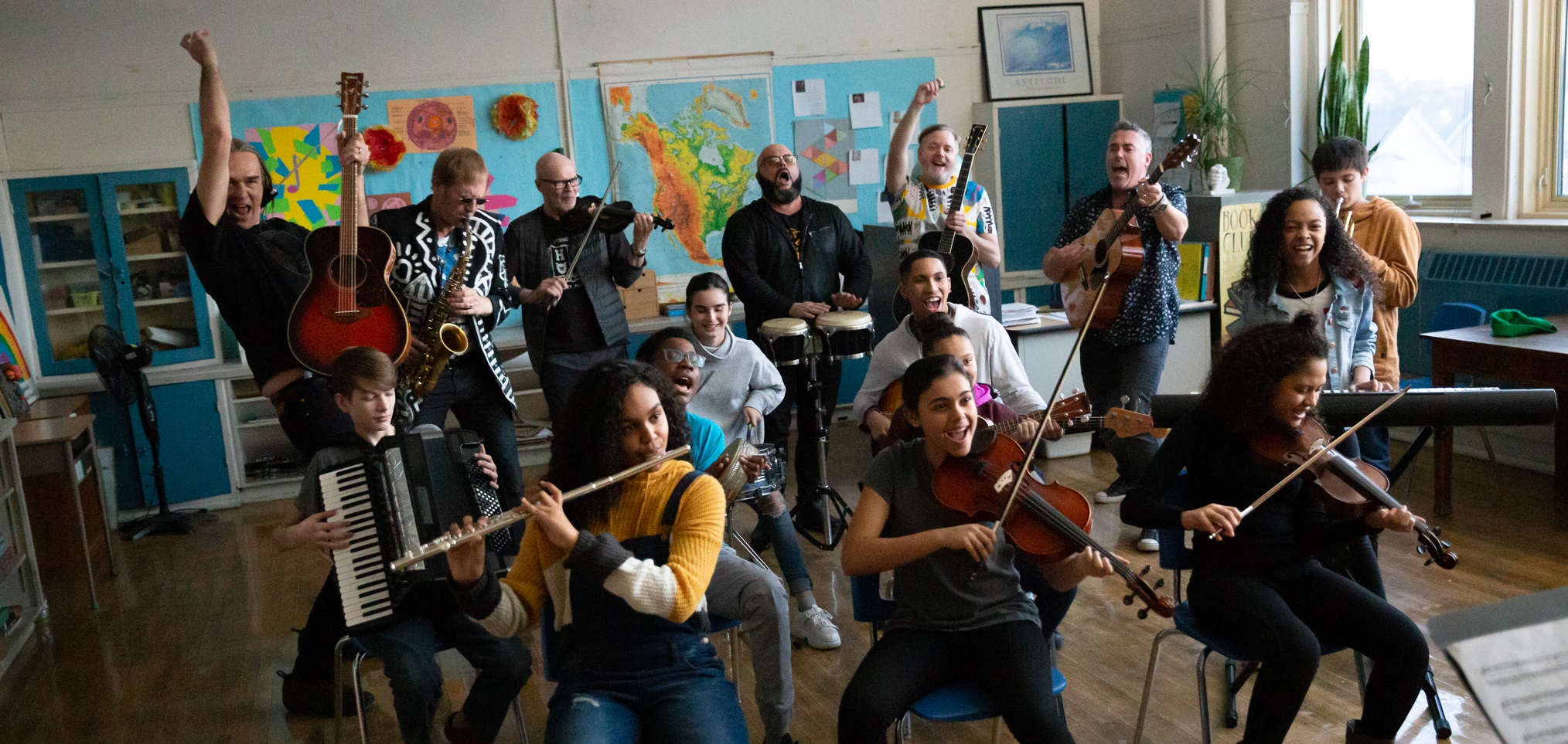 “This project was a fun and epic way to make music with friends, all in the name of a good cause. Music is a beautiful, universal language that can change lives. It’s powerful and healing. Every child should have the opportunity to explore, learn, and make music,” added Kevin Hearn.