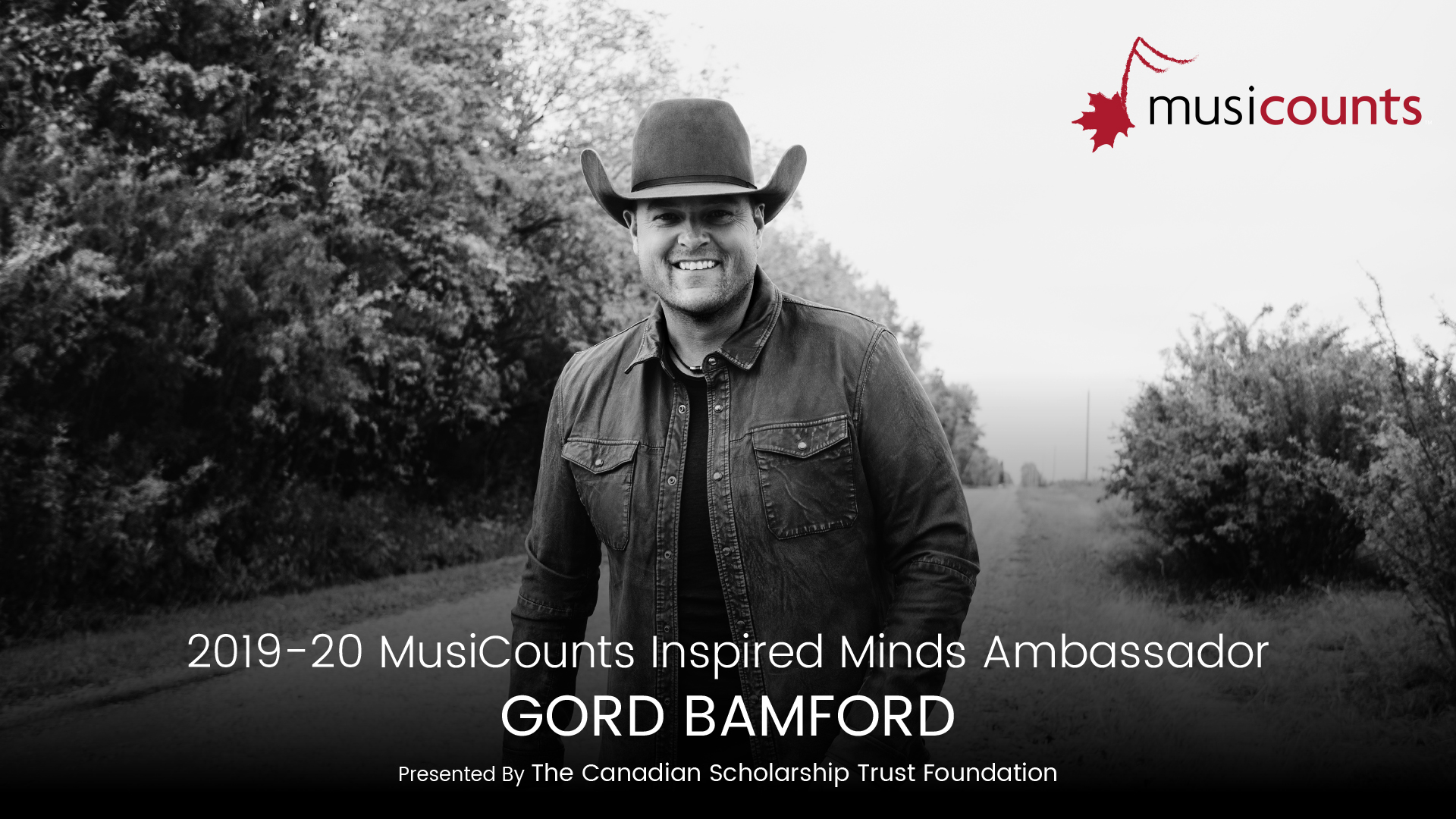 Today, MusiCounts announced Gord Bamford as the 2019-2020 recipient of the MusiCounts Inspired Minds Ambassador Award, presented by The Canadian Scholarship Trust Foundation. The award recognizes individuals who have had an extraordinary impact on music education and MusiCounts over the course of its history.