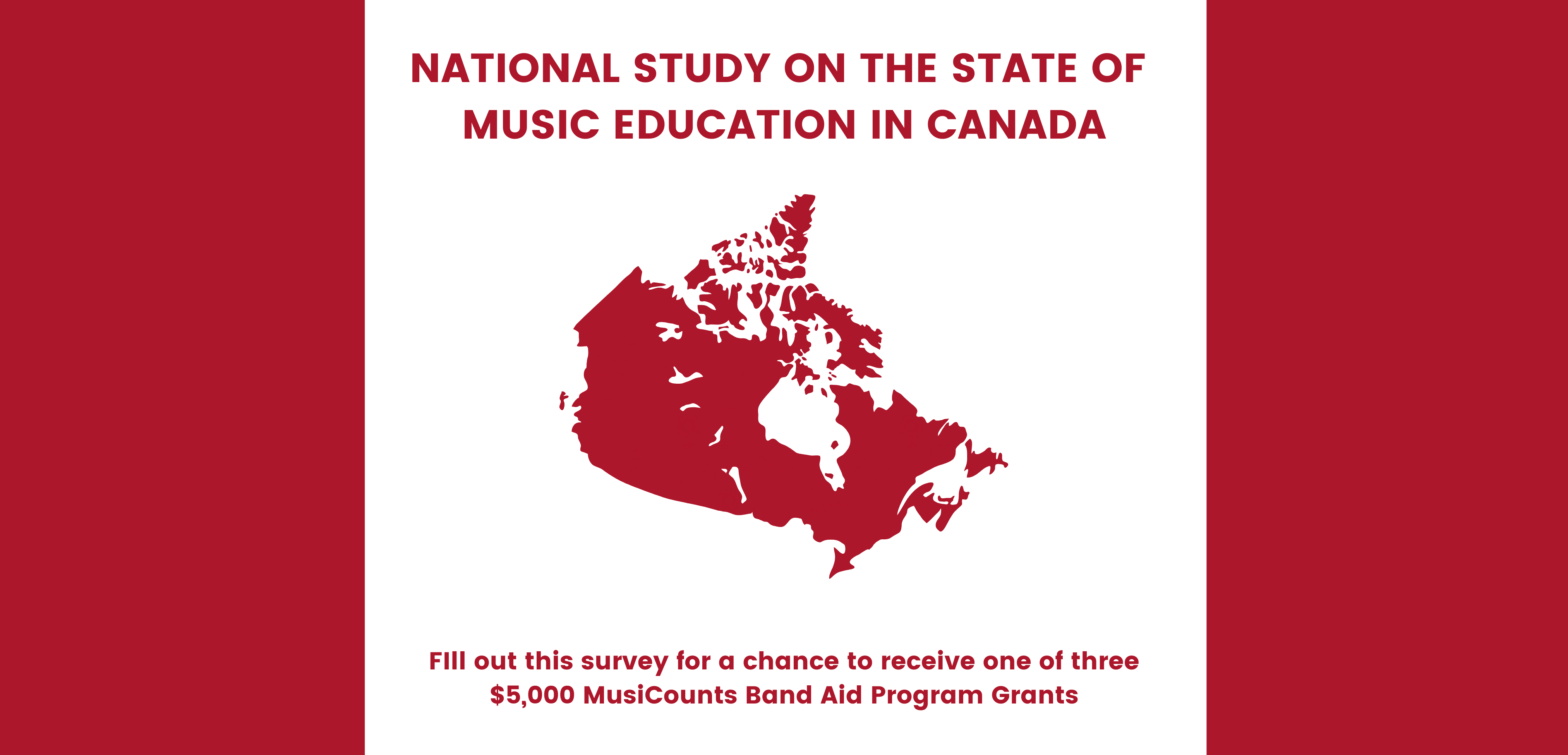 MusiCounts, alongside The Coalition for Music Education in Canada, Music Canada, The Canadian Music Educators Association, Canadian Network for Arts and Learning, and People for Education are working together on the first ever national study on the state of music education in Canada. Through surveying music educators of all stripes and school administrators, this study will paint an unprecedented picture of the spectrum of music education experiences in Canada.