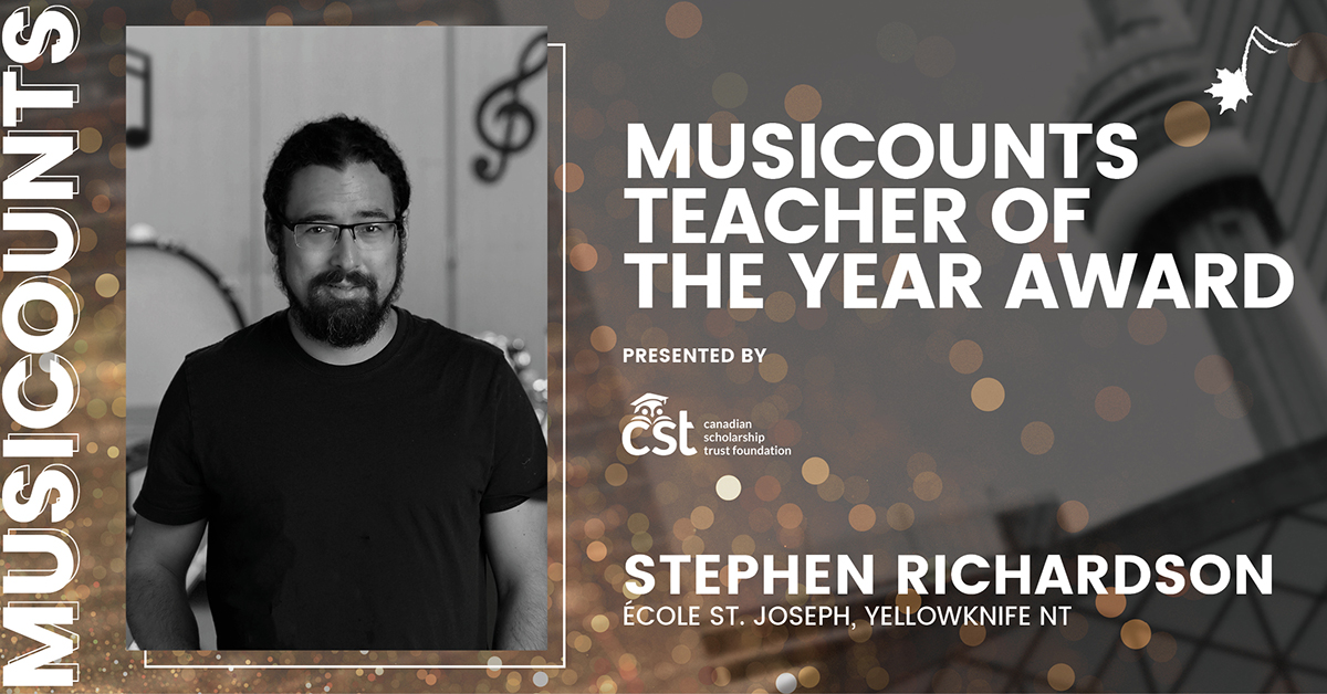 Stephen Richardson is one of five nominees for the MusiCounts Teacher of the Year Award, presented by the Canadian Scholarship Trust Foundation. The winner will be announced at the 50th JUNO Awards in June, and will receive a JUNO statuette, a $10,000 donation, and a sizable grant for the music program at their school.