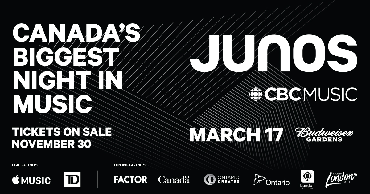 The 48th annual JUNO Awards and JUNO Week 2019 will be hosted in London from March 11 through March 17, 2019, culminating in The JUNO Awards, on Sunday, March 17, at Budweiser Gardens, broadcast live on CBC, CBC Radio and globally on cbcmusic.ca/junos