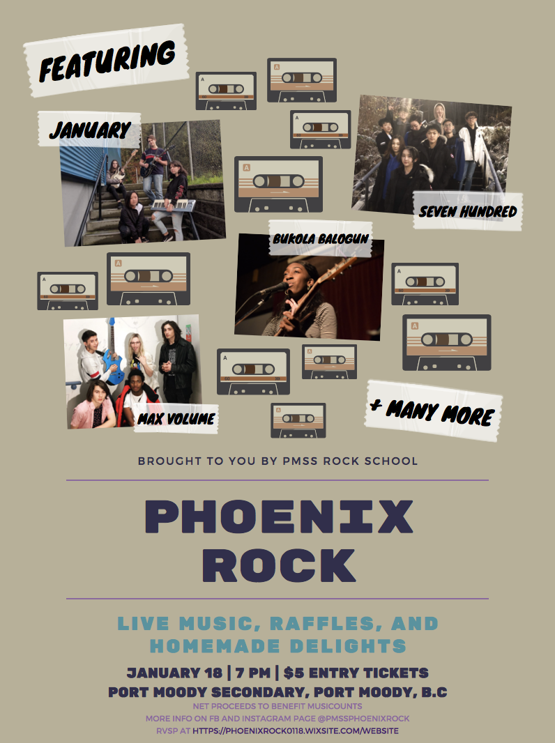 Join us on a night filled with entertainment and performances by many talented performers of the music program at Port Moody Secondary School. Genres range from Rock, Indie to R&B. A very easygoing event for you to enjoy with friends and good music. An affordable concession will be available at the venue. Homemade pastries, snacks, and drinks all donated by friendly neighborhood households working hard to support this cause.