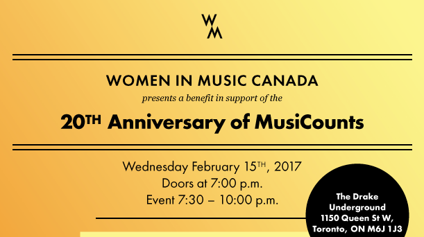 Celebrating the 20th Anniversary of MusiCounts, Women in Music Canada presents a benefit in support of MusiCounts.