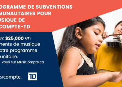 Les candidatures sont ouvertes – Programme de subventions communautaires à la musique MusiCompte-TD