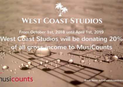 From October 1st, 2018 until April 1st, 2019, West Coast Studios will be donating 20% of gross income to MusiCounts to help all ...